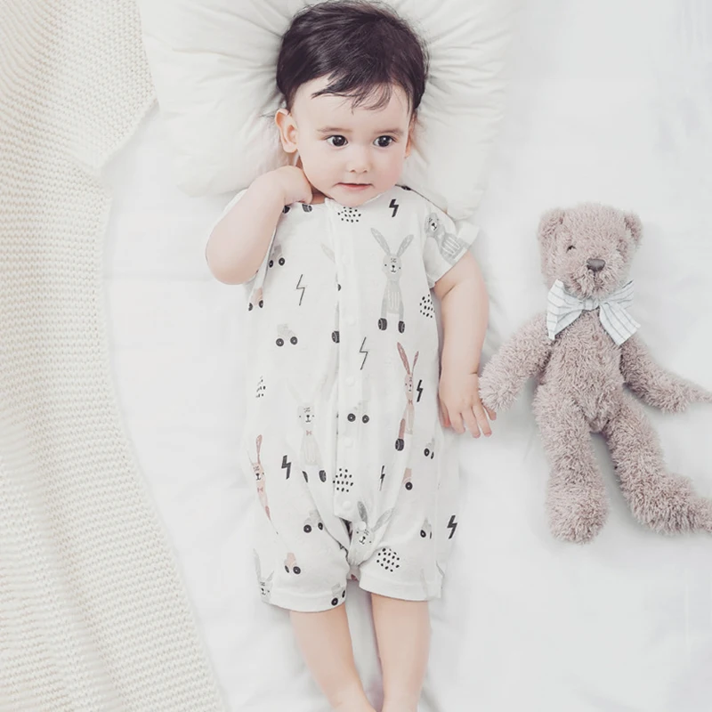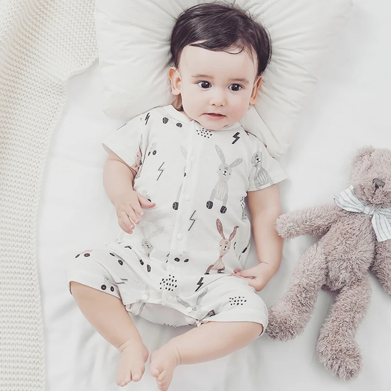 0-24M Bamboo Fiber Baby Jumpsuit Summer Baby Boy Girl Clothes Short Sleeve Baby One Piece Romper Newborn Pajamas