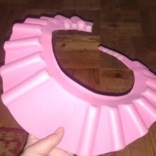 We enjoy using the baby shower cap and feel that it does a great job of keeping water away from face. Only negative is that it tends to slide down from time to time.