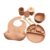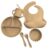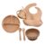 List: silicone bib *1 wooden handle spoon *1 wooden handle fork *1 silicone gutta percha spoon *1 silicone gutta percha fork *1 silicone dinner plate *1 silicone suction cup bowl *1 silicone suction cup *1 silicone open cup *1