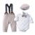 white romper + khaki pants clothes set have 6 size: 59,66,73,80,90,100