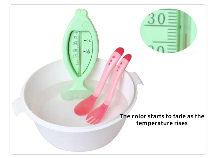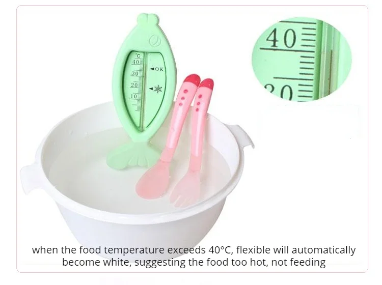 2. Tablespoons head elastomers containing temperature change materials, when the food temperature exceeds 40°C, flexible will automatically become white, suggesting the food too hot, not feeding, Very safe and convenient to use.