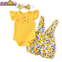 Summer Toddler Newborn Baby Girls Clothes Sets Waffle Floral Print Sleeveless Bodysuits+Ruffes Drawstring Shorts+Headband