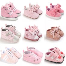 Pembe bebek ayakkabıları prenses moda Sneakers bebek yumuşak taban Anti Slip ilk yürüteçler 0-1 yaşındaki bebek vaftiz ayakkabıları