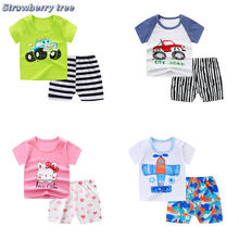 Newborn Baby Boys Girls Cartoon 100% Cotton Kids T-shirts Sets Summer Infant Short Sleeve Children Tracksuit Sports Clothes Sets