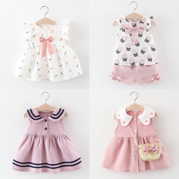 2Pcs/Set Sweet Heart Baby Girls Children Clothes Summer Toddler Dress For Girl Thin Cotton Kids Costume Suit 0 To 3 Y Send Bags