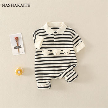 Spring Autumn Baby Boy Clothes Cotton Baby Rompers Stripe Baby Overalls Cartoon Newborns Infant Jumpsuit Kids Clothing 0-18M