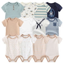 2023 Newborn Baby Girl Clothes 6Pieces Bodysuits Solid Color Cotton Baby Boy Clothes Set Cartoon Short Sleeve Bebes
