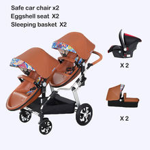 Free Shipping 3in1 Luxury Twin Baby Stroller High Landscape Pram Folding Carriage PU Leather Pram
