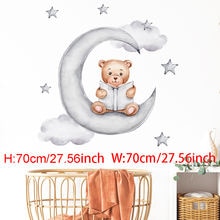 Cartoon Rabbit Moon Stars Wall Stickers For Kids Room Decoration Baby Nursery Bedroom Livingroom Wall Decals Animals House Decor
