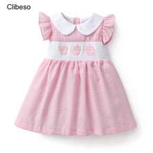 2023 Summer Children Boutique Dress Baby Girls Smocked Embroidery Dresses Flare Sleeve Peter Pan Collar Clothes Kids Vestidos