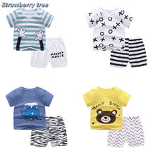 Baby Boys Girls Carton 100% Cotton T-shirts Sets Summer Newborn Short Sleeve Children T shirts+Shorts Sports 2 Pcs Sets Clothes